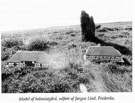 GårdeneI starten boede der 2 familier i hver gård, men efterhånden som det tyndede ud i kolonisterne fik hver familie sin egen gård. Gårdene bestod af stuehus og lade.