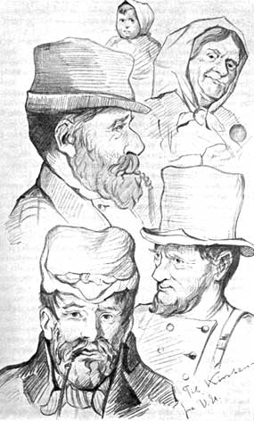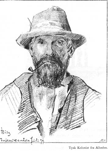 der lavede nogle skitser af efterkommerne af de tyske kolonister. Der
